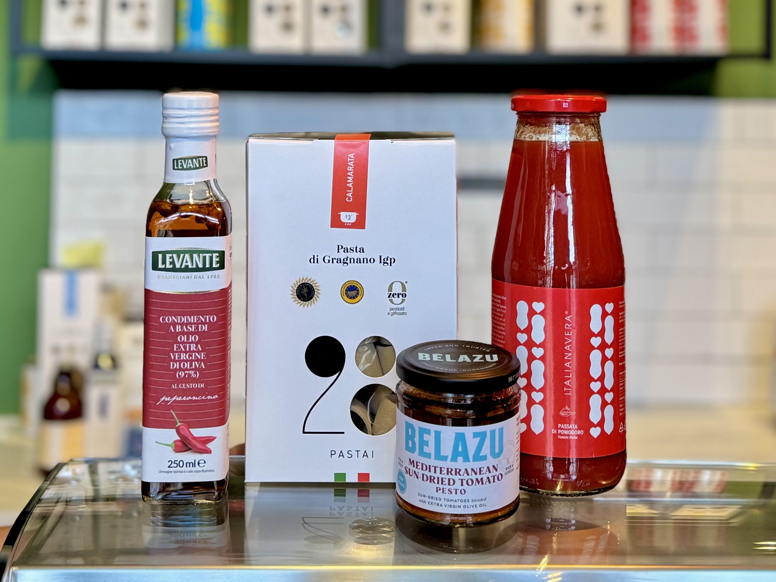 In onze geschenkpakketten vindt u het echte Italië terug, met klassieke gedroogde pasta of risotto die de basis vormen van zoveel gerechten, tot de rijke tomatensauzen en pesto’s die ze tot leven brengen. En voor wie van zoet houdt, stoppen we er onze verse jam, natuurlijke honing en heerlijke pistachecrème bij. Elk pakket is zorgvuldig samengesteld om iemand een glimlach te bezorgen.